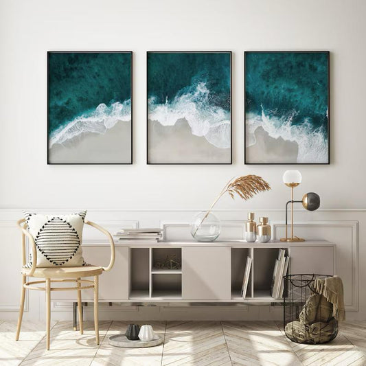 Pink Surrender Green Ocean Wall Art | Set of 3
